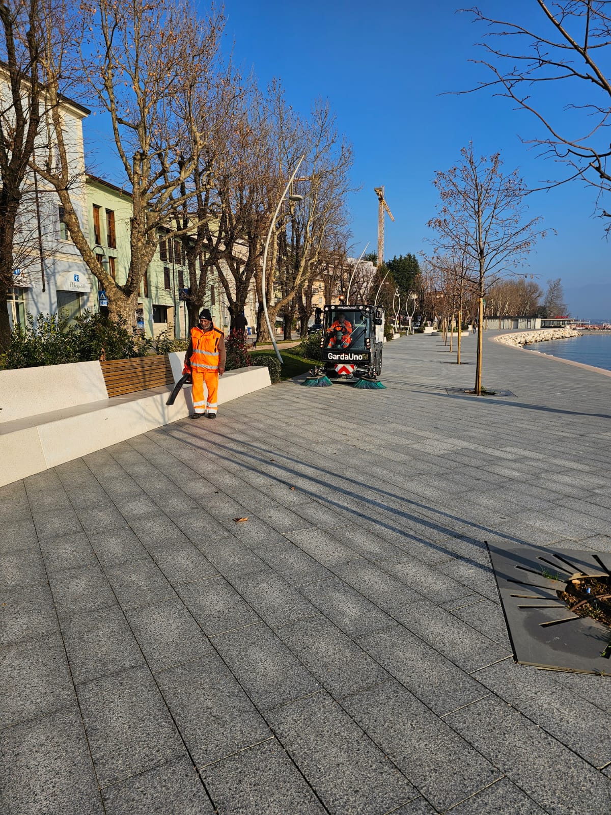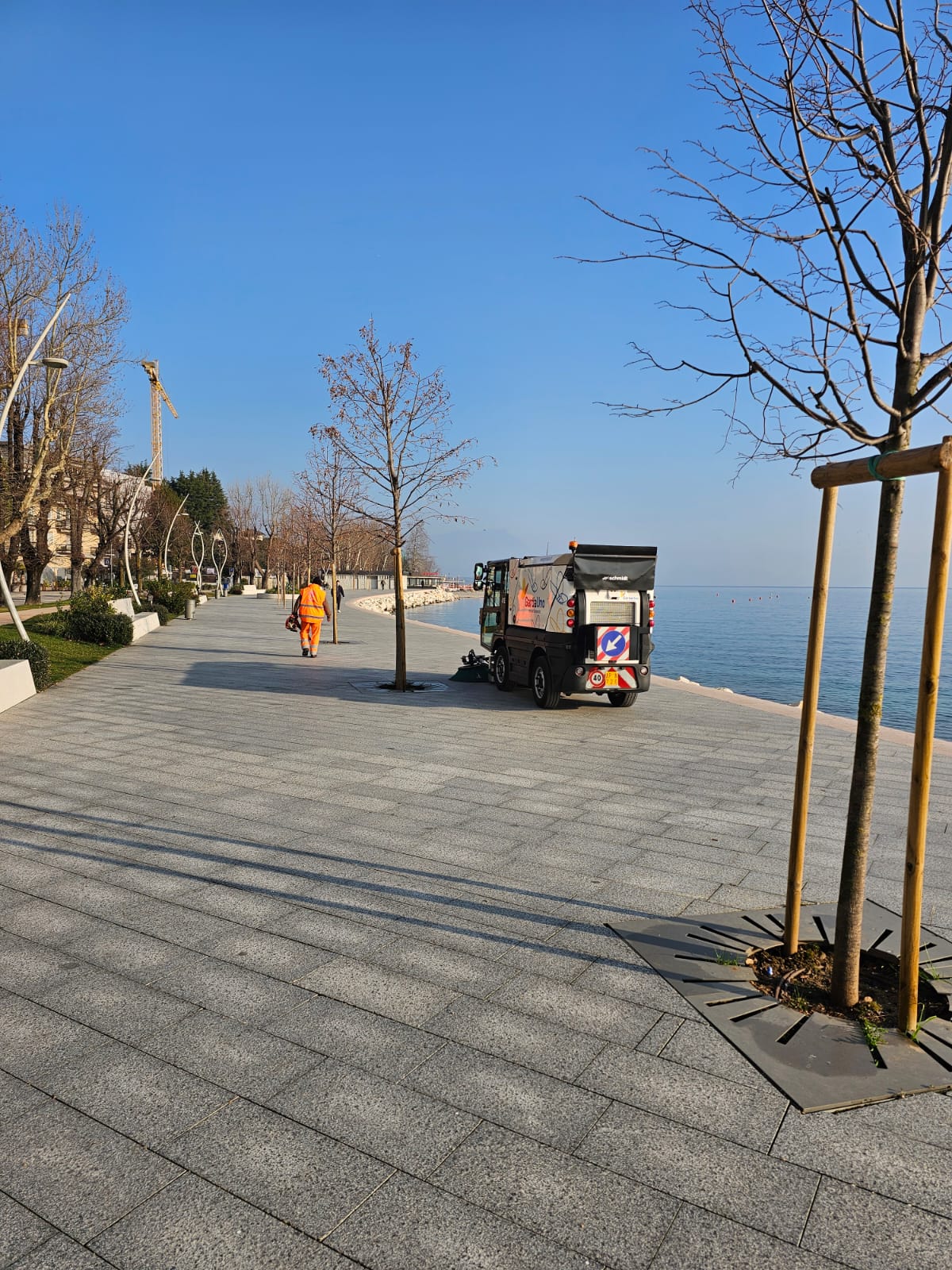 Da questa settimana le strade di Desenzano del Garda possono contare su un nuovo alleato per la pulizia quotidiana: una spazzatrice Aebi Schmidt di ultima generazione da 2 m³, conforme agli standard Euro 6 e progettata appositamente per rispondere alle esigenze di un centro storico vivo e complesso.